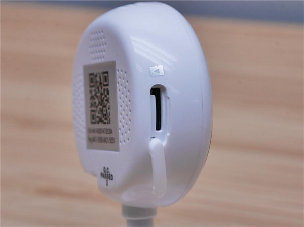 在小兴看看mini摄像头的左侧设计有TF卡槽,小兴看看mini最大支持32G内存卡,同时也支持NAS或中兴的云存储服务。