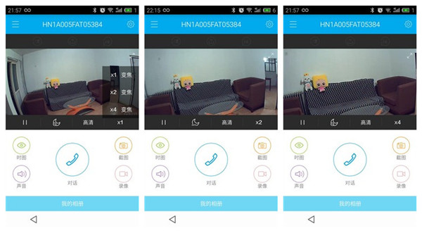 画质方面先来说说小兴看看mini具体的操作方法,当进入到操作主界面后,点击播放按键,就可以看到我们监控的实时画面了,用户可以自️主选择流畅、标清或高清模式。