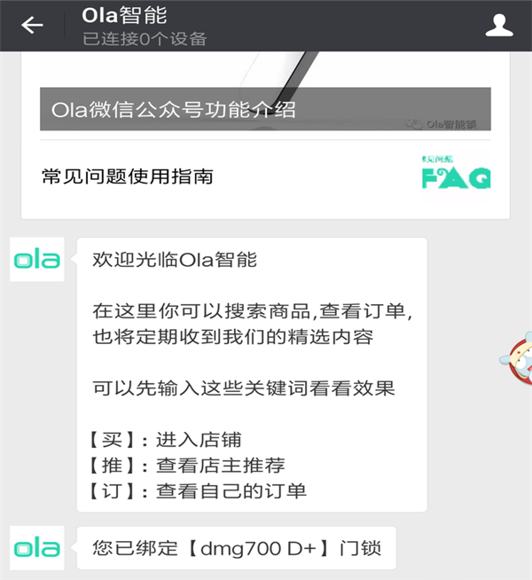 1、录入指纹:扫描说明书的二维码,关注公众号,绑定锁,绑定成功,微信会提示已绑定XXX门锁。