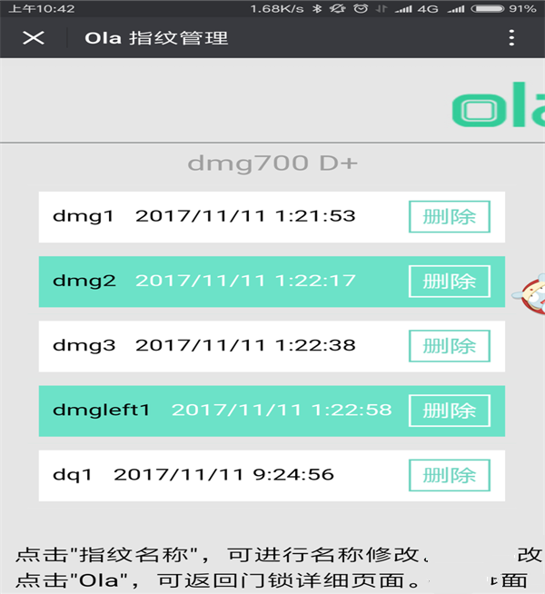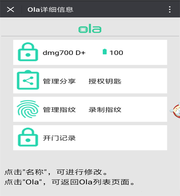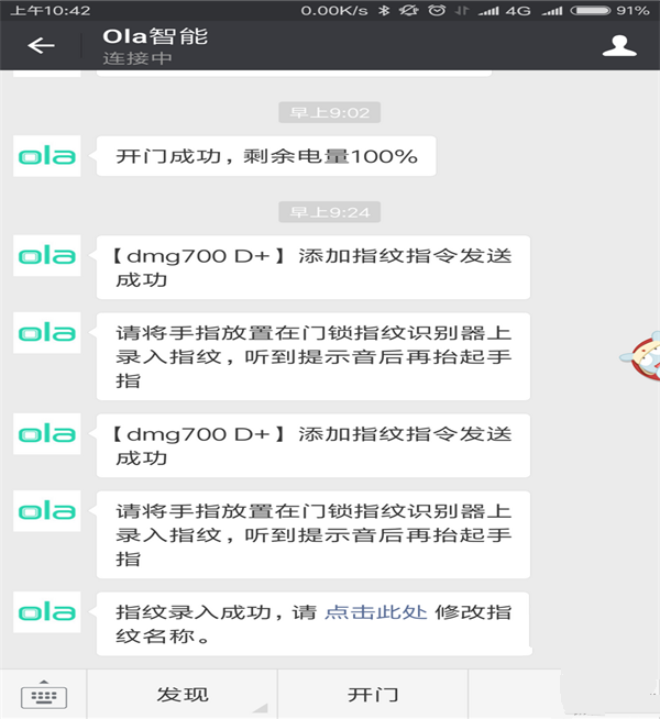 4、加强软件开发能力。首先,增加指纹开锁记录,实现远程通知功能;其次加入很久前Ola已经投入使用的防撬报警功能。