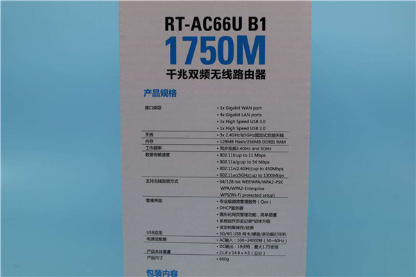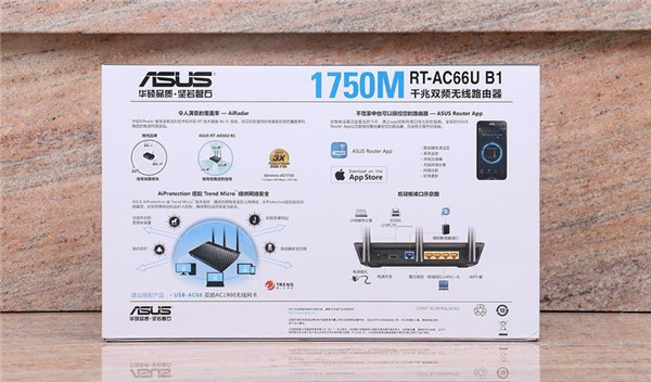 华硕RT-AC66U B1路由器外包装采用白色主题,搭配图文介绍,可以说非常花哨。