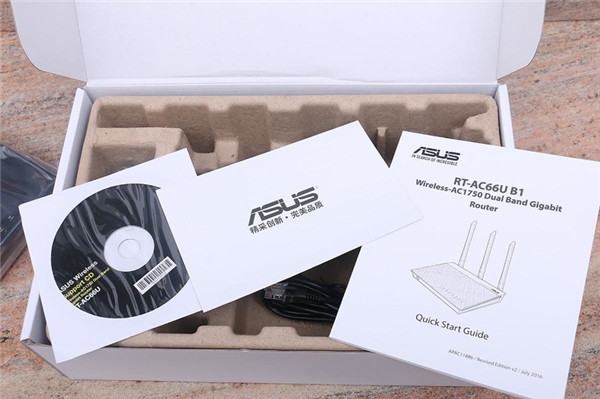 产品清单:RT-AC66U B1 × 1;快速使用指南 × 1;电源适配器× 1;随机CD × 1;RJ-45网线 × 1;保修卡 × 1