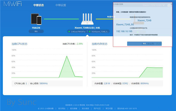 在工作模式方面,小米路由器3同样支持三种工作模式,这其中包括了路由器模式、无线AP模式、中继模式。在面积比较大的家居环境中,小米路由器3同样可以组建AP网络,来让用户拥有更好的WIFI信号。这里提一下这个“中继模式”,当用户设置了中继模式后,小米路由的管理后台地址会发生改变,此时一定要记下管理地址(特别是当同时关闭了本路由的DHCP服务),否则会导致无法进入路由器管理后台,只能Reset。