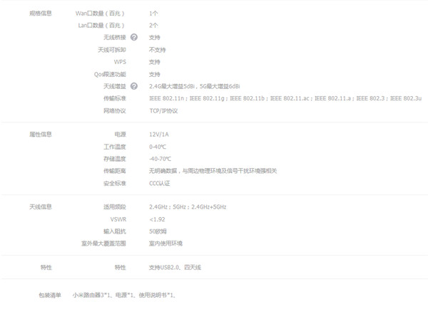 产品包装延续小米系列的简单风格,包装正面直接标注型号,从型号标识AC1200不难看出,这款路由器产品支持802.11ac无线标准。
