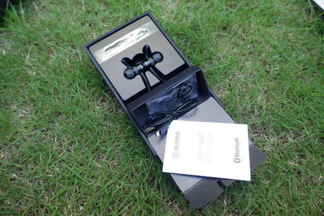 打开盒子,耳机的摆放很讲究,包装上有酷狗音乐的宣传口号:音乐总有新玩法。