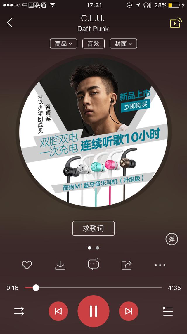 初听这款M1升级版就察觉到酷狗作为大牌音乐厂商所坚持的调音理念,一是细腻的解析度及六级降噪性能,二是拥有比同类耳机更为强劲的低频以及超宽的声场。来举几个栗子吧。