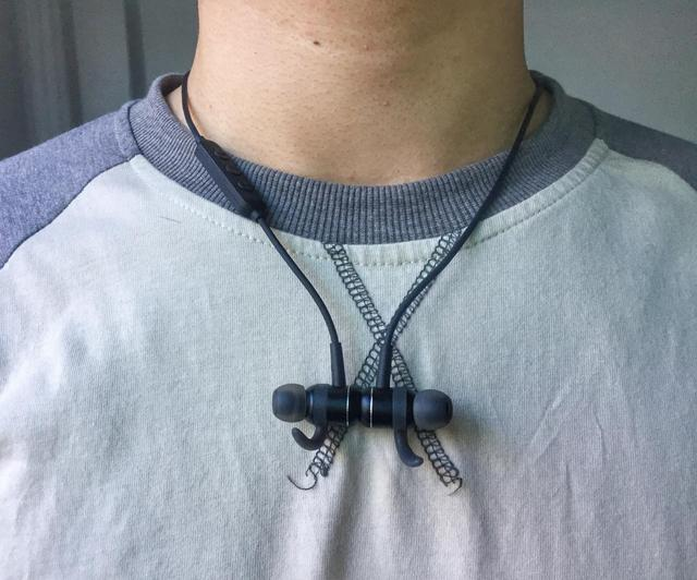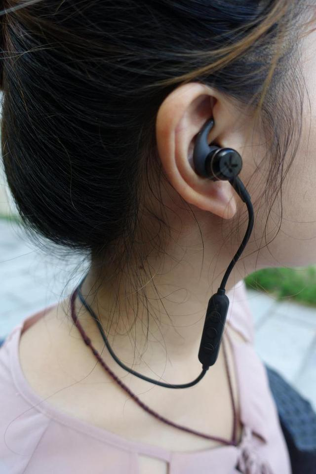佩戴感受:酷狗M1升级版带有不同大小型号的耳翼,能很好地固定在耳蜗当中,整体重量很轻巧,耳塞的入耳部分距离合理,佩戴起来摩擦度刚刚好,不会有滑落的感觉,舒适度接近满分。三键式的线控仅通过触感就能完成操控,短按加减键为“音量加减”,长按加减键为“切歌”,功能键为“播放”和“暂停”,比将控制键放置在耳机腔体上的耳机要方便不少。有防水功能加持,运动时佩戴不用担心被汗水淋湿或腐蚀了,并且克服了被耳机线缠绕的恐惧,在十米范围内都能接收到蓝牙信号,科技改变生活啊哈哈哈!