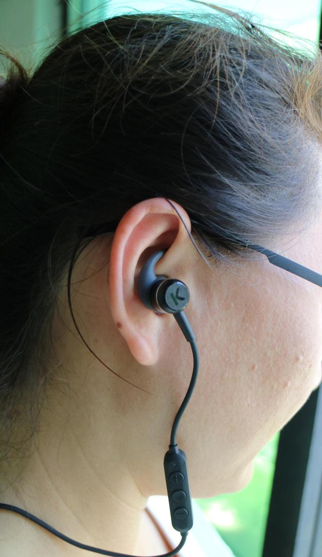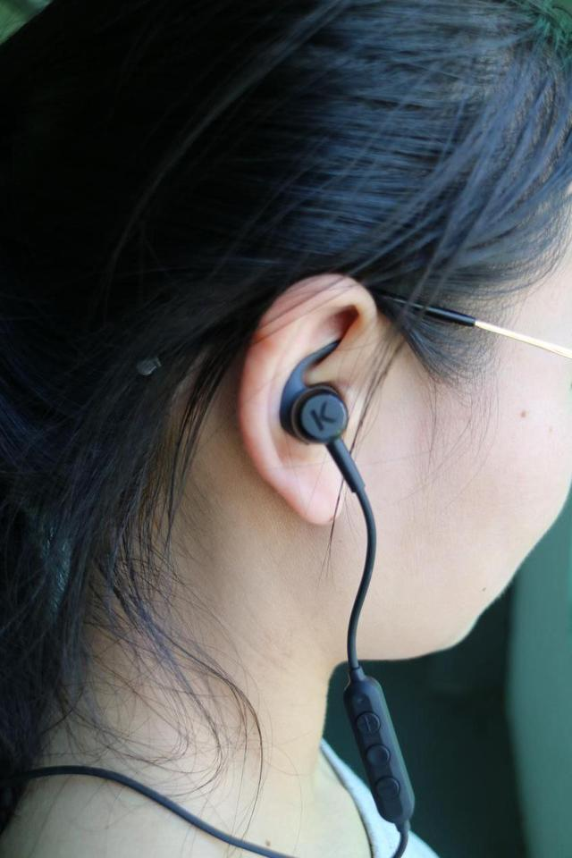 Cindy:因为耳廓较窄,用的是最小号的耳翼,带上去很舒服,怎么晃都不会掉!大概十米以内都能接收得到蓝牙信号。耳机整体轻便小巧,很讨女生喜欢,如果是粉色或者银色的话就更好啦,哈哈哈!