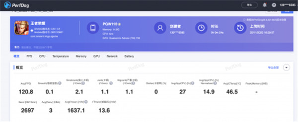 大家可以看下方使用OPPO Reno9 Pro+进行的游戏测试。在开启最高画质的情况下,OPPO Reno9 Pro+的《王者荣耀》平均帧率能够达到120.8帧,也就是满帧的水平,而且全程游戏并没有出现大的波动,非常的流畅。值得注意的是,在高强度的游戏测试之后,OPPO Reno9 Pro+的机身温度依然能维持在35.1摄氏度,没有出现发热的现象。