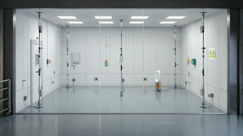 在发现用户的使用细节后,戴森工程师们在2017年开发了名为POLAR(Point Loading and Auto Response)的测试方法,旨在更大的室内空间中模拟用户真实家居环境的净化需求。该测试在一个81立方米的实验室内展开,在不安装附加混流风扇的情况下,将空气净化设备放置在一角,并采用9个传感器持续监测整屋的空气质量数据,评估空气净化设备的过滤表现、传感性能以及整屋均匀净化效果。这一测试能够全面、有效地保障真实家庭环境中整屋空气质量的洁净与健康。