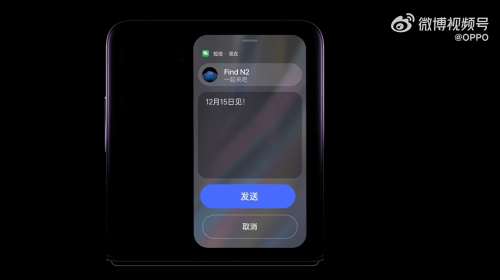 由官方所放出的预热视频来看,全新的OPPO Find N2 Flip采用了一块尺寸不小的外屏设计,屏占比方面显然也已超过了50%,可以说是目前市面上小折叠手机里外屏尺寸最大的。而大外屏的好处自然是在交互方面能提供更多的操作空间,能够为更多App打造出外屏使用的可能性。像是官方所演示的,OPPO Find N2 Flip可通过外屏来浏览以及回复微信消息,无需打开手机内屏来进行回复,这显然为用户们节省了许多操作上的麻烦,使得小折叠手机也能实现大折叠屏手机的外屏使用体验。