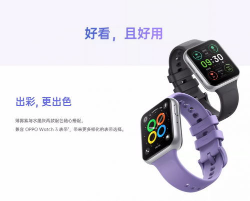 作为一款智能手表,OPPO Watch SE可以满足用户在时尚穿搭方面的多元化需求,以精巧的外观设计和AI穿搭功能俘获了不少用户的芳心。它继承了OPPO智能手表产品简约大方的设计风格,采用主流的方形表盘,推出薄雾紫和水墨灰两种时尚配色表带,并且兼容OPPO Watch 3表带,满足不同用户的审美偏好。同时,它支持AI穿搭功能,用户可通过APP的穿搭功能拍下自己的衣服,APP随即根据AI算法将匹配适合穿搭风格的表盘模版,让这款手表成为货真价实的百搭好物。