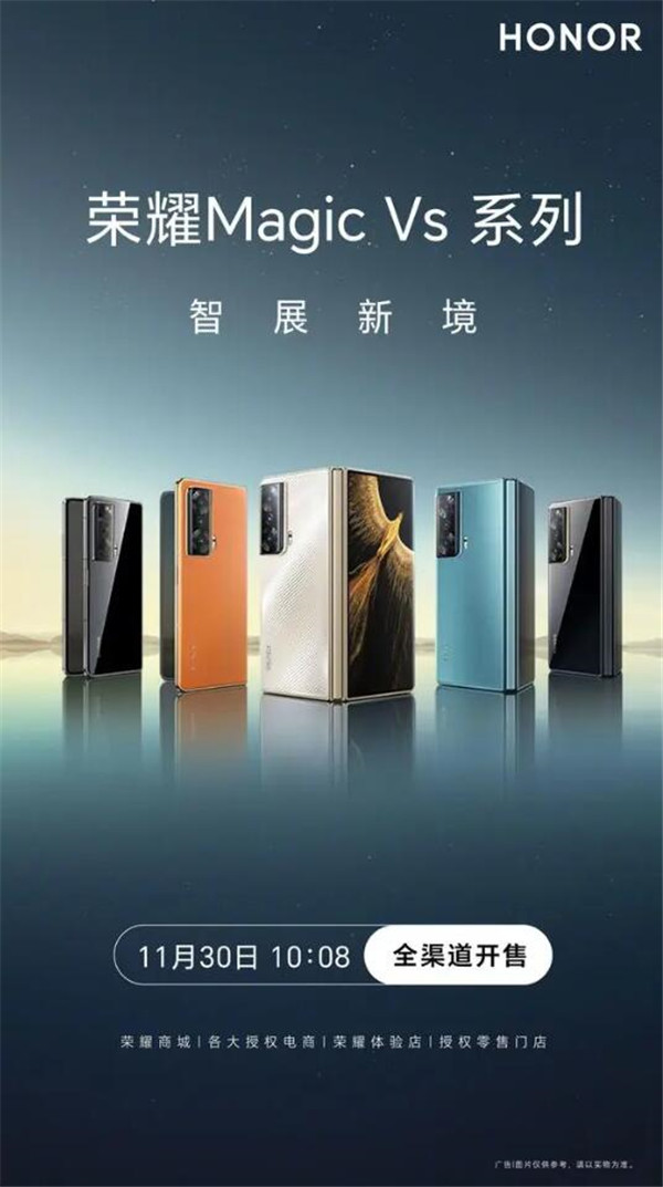 11 月 30 日消息,11 月 23 日,荣耀正式发布新一代旗舰折叠屏手机 —— 荣耀 Magic Vs 系列,今日 10 : 08 新机正式开售,售价 7499 元起。