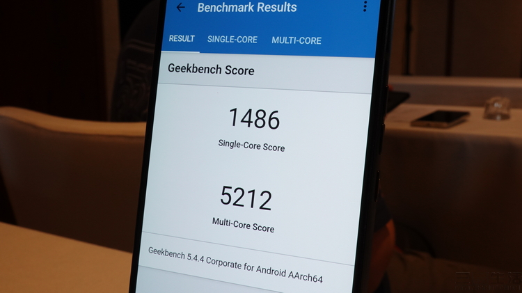 可以看到,它跑出了单核1486、多核5212分的成绩。这是什么概念呢?我们对比了手头此前测试过的第一代骁龙8+某旗舰机型,它的单核/多核得分为1291分和4364分。