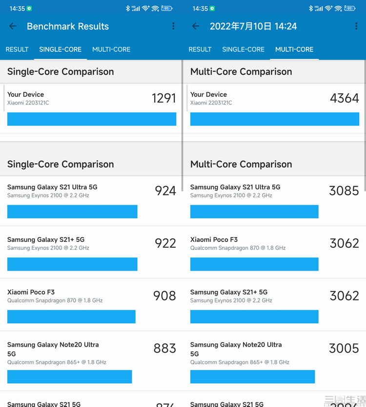 其次,如果大家以前有注意过我们的相关评测内容或许还记得,通常来说SoC代际之间的性能差异,单核性能的提升幅度往往要大过多核性能。这是因为多核满载测试时,可能会出现节流的问题、并致使最终测试成绩“缩水”。