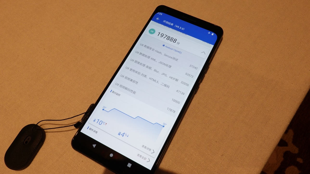 可以看到,在跑分过程中这台工程样机的温度从20摄氏度上升到了30摄氏度。如果只看这个温升程度(10摄氏度),确实算不上太低,但问题在于无论是跑分前的待机温度(20摄氏度)、还是跑分后的温度(30摄氏度),本身相对于现在的旗舰手机来说,其实又可以说是无比“凉快”的。