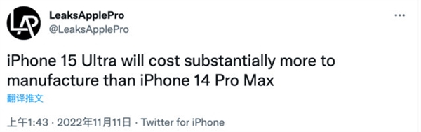 iPhone 15 Ultra售价上涨的原因包括两方面,一是新机堆料太猛,二是上游供货商成本提升,这也是最主要的原因。