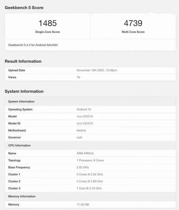 现在,vivo X90 Pro+ 出现在了 Geekbench 跑分中,型号为 vivo V2227A,确认搭载高通骁龙 8 Gen 2 芯片组和 12GB 内存。