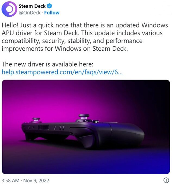 11 月 10 日消息,Valve 为想要在 Steam Deck 上运行 Windows 10/11 的用户发布了一个新的驱动程序。据该公司称,最新版本包括针对 Steam Deck 运行 Windows 的各种兼容性、安全性、稳定性和性能改进。