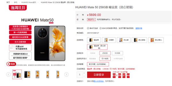 售价方面,Mate 50 256GB版5699元、512GB版6699元,Mate 50 Pro 256GB版6999元、512GB版7999元。整体比非昆仑版贵了200元。