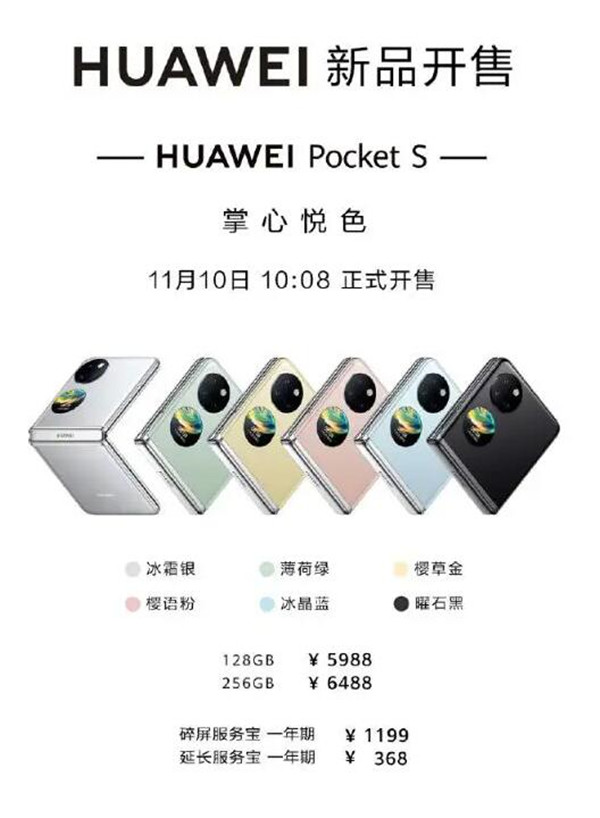 11 月 10 日消息,11 月 2 日华为发布了新款折叠屏手机 Pockete S,今日该机首发开售,售价 5988 元起。