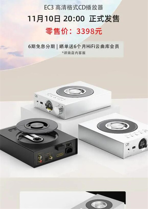 11 月 9 日消息,山灵 EC3 高清 CD 播放机将于 11 月 11 日上市,官方今日公布了该机的售价为 3398 元,将于 11 月 10 日 20 点正式发售。