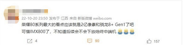 荣耀80 Pro传感器可能为三星的HP1,充电规格则继续沿用了100W超级快充,正面将配备一块1.5K高频调光屏幕。相比荣耀70系列,荣耀80系列在性能上有不小升级,赶在下周发布也是为了在双11中开始首销。