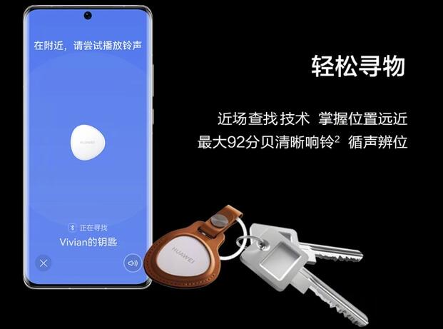 HUAWEI Tag 防丢精灵重量为 6g,厚度为 5.6mm,支持近场查找技术,最大 92 分贝响铃,物品遗落后可快速弹窗提醒。HUAWEI Tag 防丢精灵也支持远距离寻物,通过华为“查找”网络进行远程定位,通过数亿华为设备帮助定位。