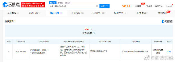 天眼查App显示,近日,上海小度技术有限公司因违反广告法,被上海市浦东新区市场监督管理局罚款25万元。