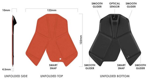 据介绍,Air.O 鼠标在展开时只有 4.5 毫米厚,比目前大多数手机还薄。传感器单元有些突出,是一个 10 毫米的凸起。Air.O 鼠标的重量也非常轻,只有 40 克,可与一些非常轻的游戏鼠标相媲美。