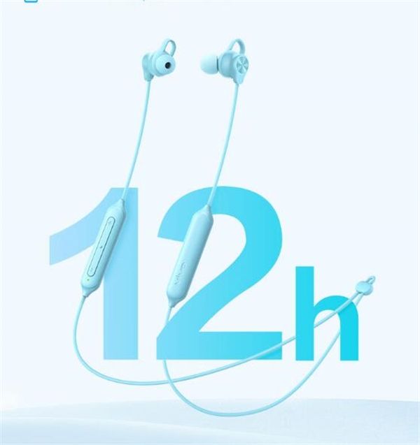 新耳机是一款颈挂式蓝牙耳机,耳机非常轻巧,整体重量只有18克,采用专属牛角耳设计,可以紧密贴合耳部,佩戴更加牢固。