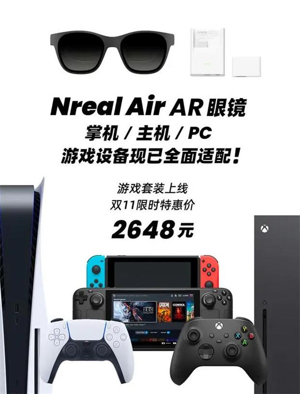 与此同时,Nreal 为游戏玩家定制了 Nreal Air 游戏套装,内含 Nreal Air AR 眼镜和 Nreal 适配器,双 11 特惠价仅 2648 元,作为一款“游戏必备躺赢神器”,Nreal Air 游戏套装可以说是游戏玩家们必不可少的硬核装备,心动的小伙伴可不能错过这个套装了。
