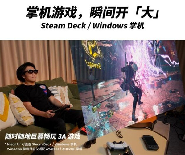 10 月 25 日,穿戴 AR 眼镜品牌 Nreal 官方宣布,Nreal Air AR 眼镜迎来重磅升级,正式适配 PS 和 Xbox 游戏主机。目前,Nreal Air AR 眼镜已经全面适配 PS、Xbox、Switch、PC、Steam Deck、Windows 掌机、平板、手机等主流游戏设备。