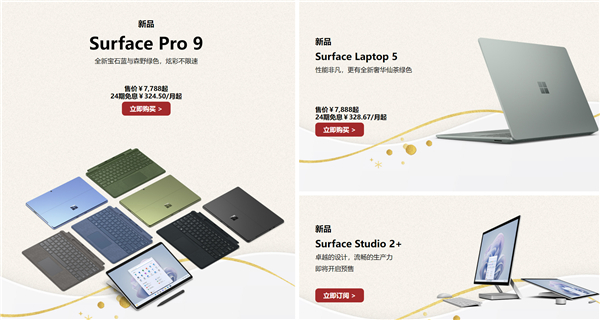 10月12日,微软发布了新一代的Surface Pro 9二合一轻薄本、Laptop 5笔记本及Surface Studio 2+一体机等Surface新品,今天开始Surface Pro 9、Laptop 5两款产品首发开卖,售价7788、7888元起,顶配干到了1.3或者1.4万元。