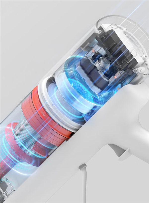 米家吸尘器2升级枪式外观,配有可视化尘杯,并升级旋风风道,此前的三重过滤也升级到五重过滤。