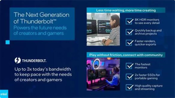 10 月 20 日消息,英特尔今天预览了下一代 Thunderbolt 标准(暂称 Thunderbolt 5),这将使未来的 Mac 及 Windows 设备等能够实现超快的数据传输速度,并在 2023 年或以后推出的标准中改进外部显示器支持。