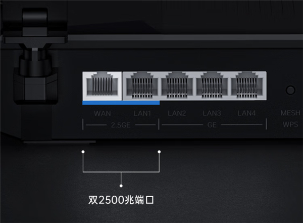 接口部分,路由较前代增加了USB 3.0接口,可接移动硬盘或U盘作为轻NAS/家庭网盘/FTP服务器等使用。采用双2.5GE网口,支持未来2500M内、外网传输需求。