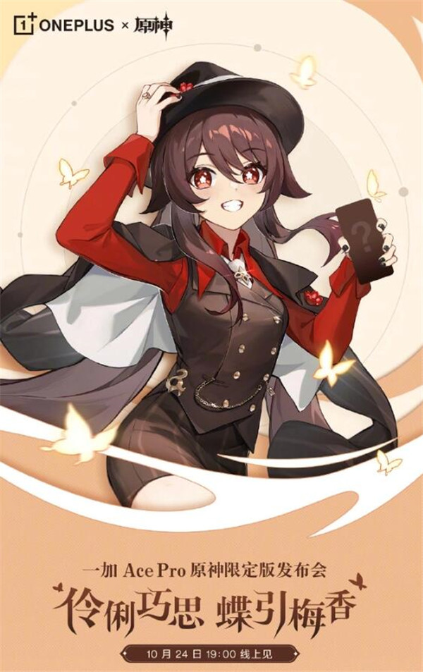 10 月 19 日消息,今日上午,一加手机官方宣布,一加 Ace Pro 原神限定版发布会将于 10 月 24 日 19:00 召开,宣传语为“伶俐巧思,蝶引梅香”。