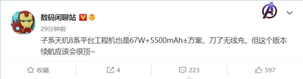 今天,博主数码闲聊站暗示,Redmi K系列新旗舰搭载联发科天玑8系迭代芯片,同时支持67W有线闪充,电池容量为5500mAh。