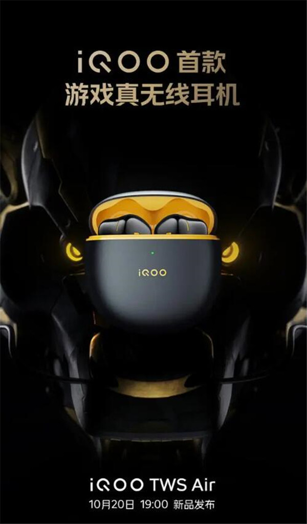10 月 17 日消息,iQOO 手机官方宣布,iQOO 首款游戏真无线耳机要来了。10 月 20 日 19:00 全新 iQOO TWS Air 真无线耳机将和 iQOO Neo7 新品同步登场。