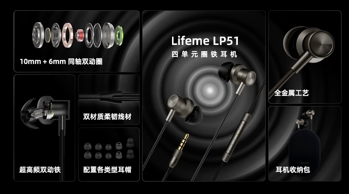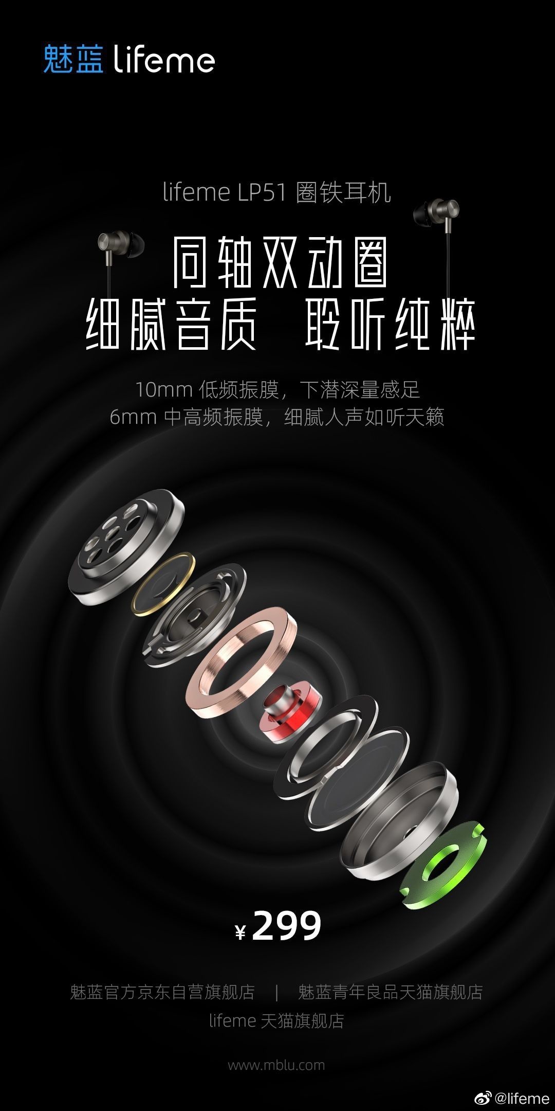 魅蓝 Lifeme LP51 四单元圈铁耳机,售价 299 元,现已开售。