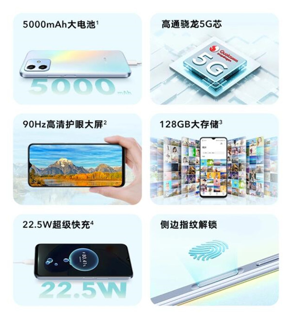 配置方面,荣耀 Play6C 搭载高通 SM4350Pro 5G 处理器,IT之家并未查到此款处理器的具体型号,但作为对比,高通骁龙 480 处理器的型号为 SM4350。官方称这是一款八核处理器(2*A76*2.2GHz+6*A55*1.9GHz),辅以 Adreno 619 GPU。此外,该机内置一块 5000mAh 大容量电池,官方称可持续追剧 19 小时。同时,新机还支持 22.5W 超级快充,充电 10 分钟即可完成 3 局游戏对局。