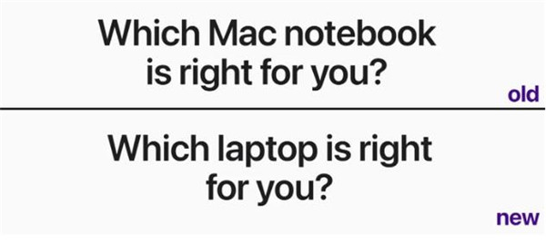在过去的一周里,9to5Mac 注意到,苹果支持的文章进行了更新,开始使用“Mac laptops”或“laptops”,而不是“notebooks”,几十篇文章已经被更新,至少在美国的官网是这样。