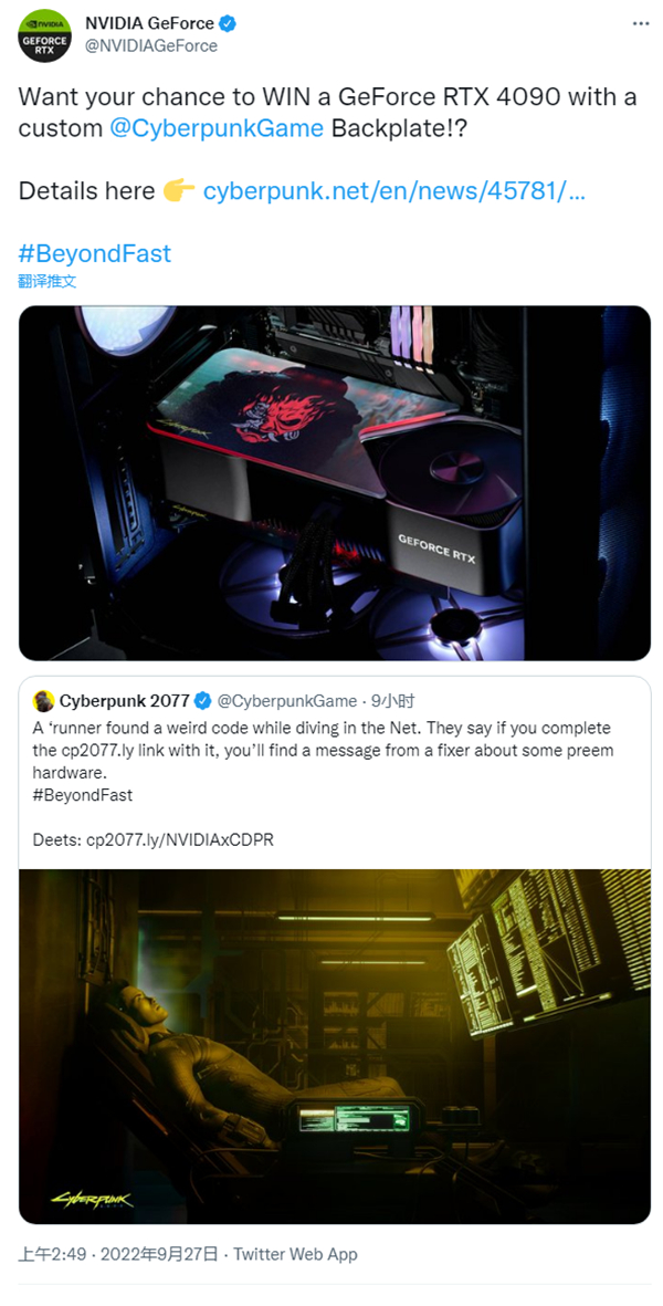 根据官方透露,想要获得显卡,玩家需要前往“Cyberpunk 2077”官推,在指定推文中寻找线索,但具体规则还未公布。