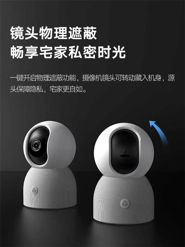 小米智能摄像机 2 AI 增强版可物理遮蔽摄像头,保护用户隐私。同时,小米智能摄像机 2 AI 增强版支持 360° 全景视角,可设置 6 个常看点位,并定时定点巡航。