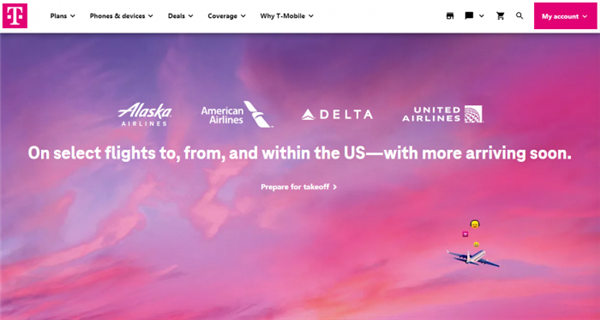 继美国航空(American Airlines)、阿拉斯加航空(Alaska Airlines)和达美航空(Delta Air Lines)之后,T-Mobile 客户现也能够享用第四家航空公司的免费机上 Wi-Fi 服务。作为 Coverage Beyond 福利的一部分,T-Mobile 客户将能够在美联航(United Airlines)客机上获得相同的优惠。