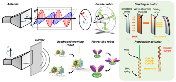 研究成果近日在顶刊《Advanced Science》(影响因子:17.521)发表,论文标题为《Multi-Degree-of-Freedom Robots Powered and Controlled by Microwaves》,博士研究生李永泽为该文第一作者,赵建文教授和邢志广博士为该文的共同通讯作者。