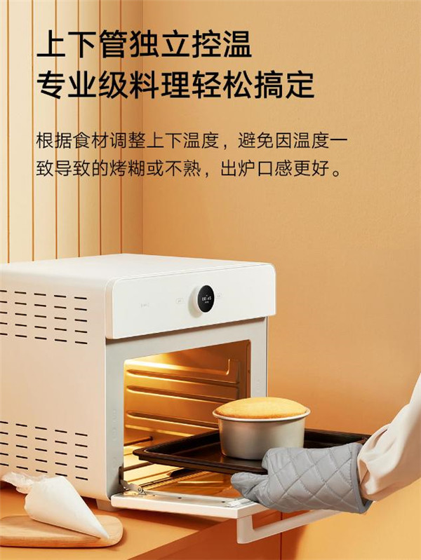 米家智能空气炸烤箱 30L 上下烤管独立温控,可根据食材调整上下温度,避免温度单一导致的烤糊或不熟。同时,米家智能空气炸烤箱 30L 拥有发酵、解冻、保温、干果等功能,可一机多用。