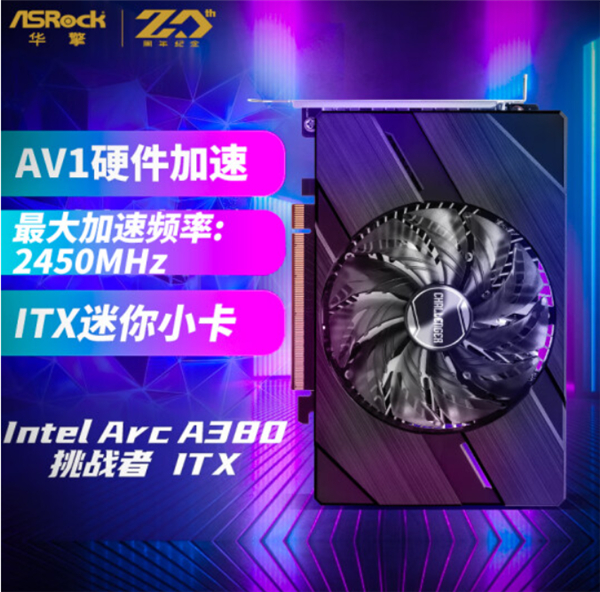 另外,华擎的Arc A380挑战者版采用单风扇ITX造型,核心频率2250MHz,最高加速2450MHz,目前价格1149元。