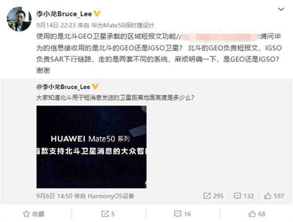 对此,李小龙回应称:“使用的是北斗GEO卫星承载的区域短报文功能”。